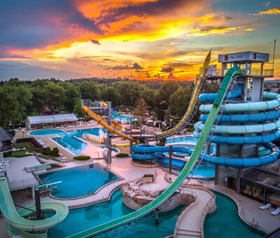 TERME 3000 , kde můžete využívat jak vnitřní, tak venkovní bazény, včetně těch s černou vodou. K dispozici je také hotelový bazén vnitřní i venkovní a wellness centrum se saunami (v ceně).