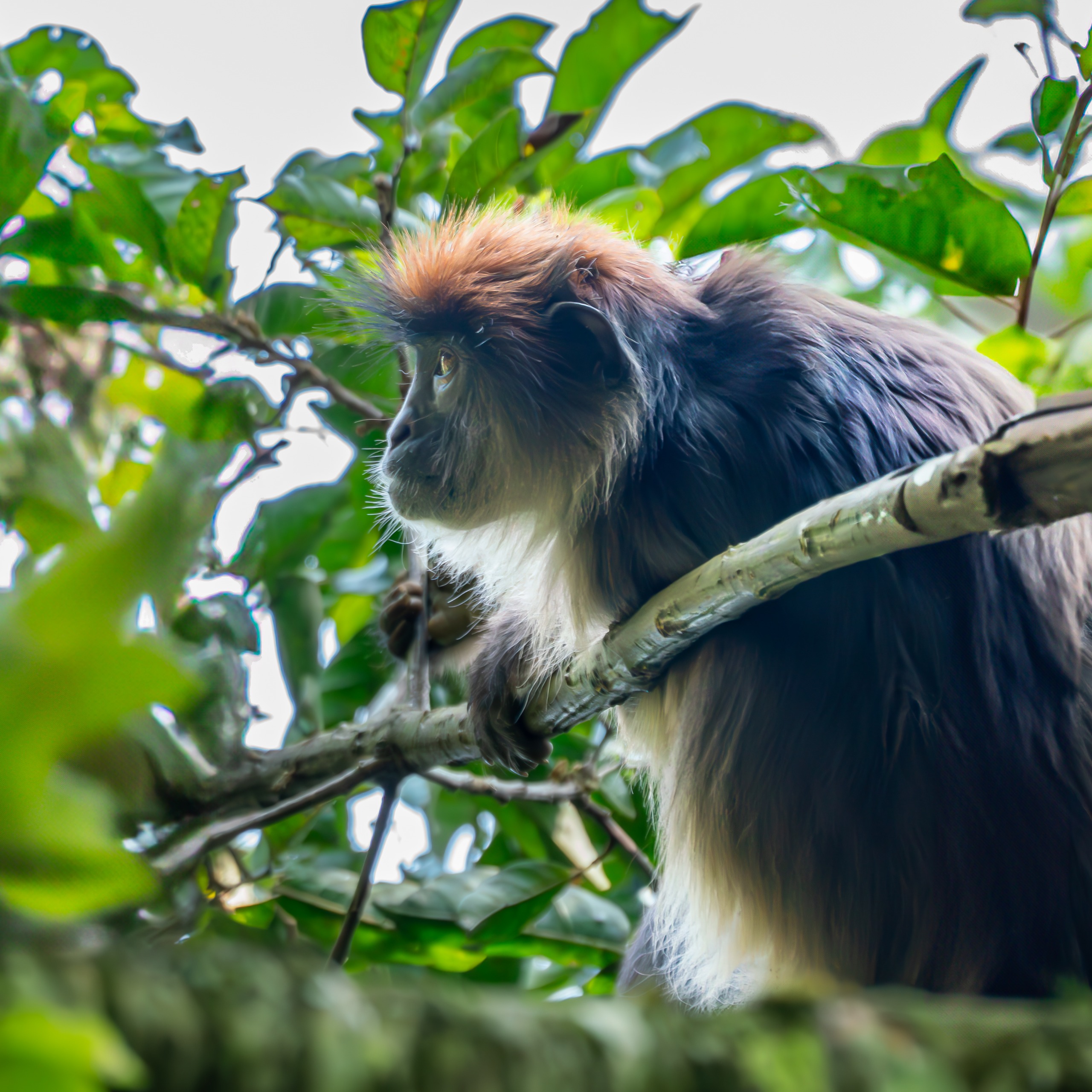 Odpoledne začne naše ŠIMPANZÍ EXKURSE. Vstoupíme do deštného pralesa KIBALE FOREST, kde se stromy takřka dotýkají oblohy. Les je bohatý na ptačí faunu (např. včelojed černý, orel korunkatý, turako Rossův, papoušek šedý gabonský). V tomto deštném pralese je ale nejvyšší koncentrace primátů, celkem 12 druhů, včetně šimpanzů, gueréz colobus, gueréz červených, mangabejů šedých, paviánů olivových a 3 druhů galagů. V Kibale se vyskytují skupiny asi 50 jedinců šimpanzů.