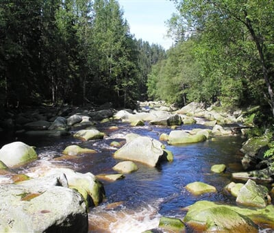 PRAMENŮM VLTAVY na úbočí Černé hory (1 190 m). Po dřevěných chodnících si projdeme naučné panely a pořídíme fotky u pramene nejdelší české řeky. Po návratu na